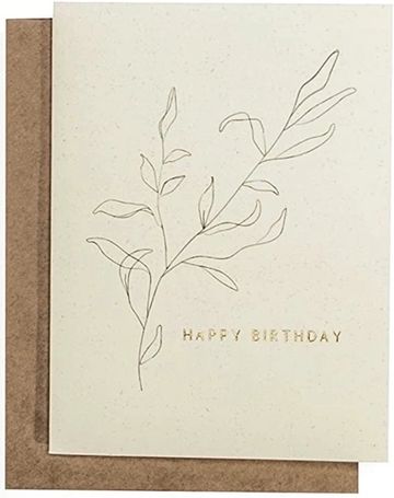 The Happy Birthday card when folded is 3.75” x 5”, and comes with corresponding brown envelopes.